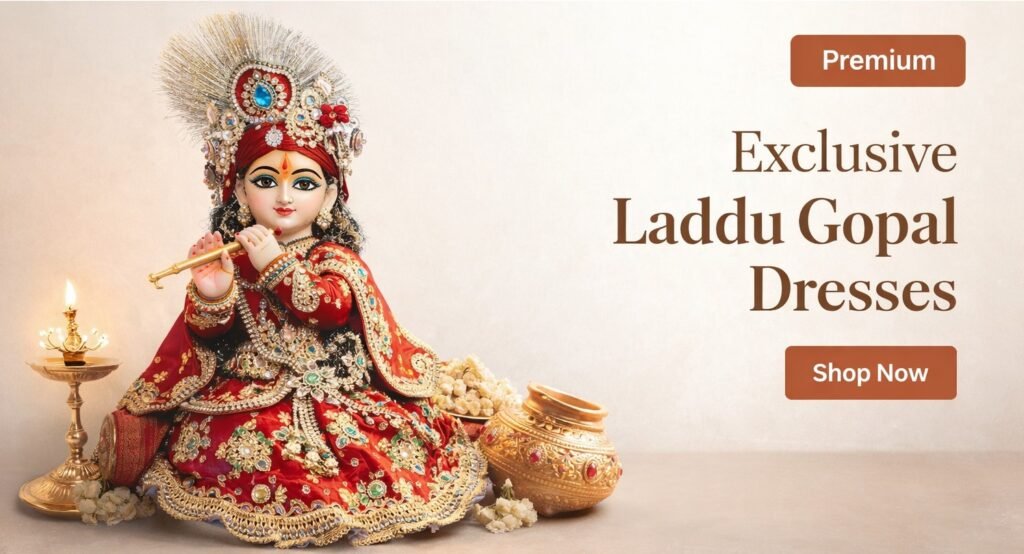 Laddu Gopal Dress Set with Mukut and Bansuri | Designer Velvet Laddu Gopal Poshak | Kanha Ji Dress for Size 1-25