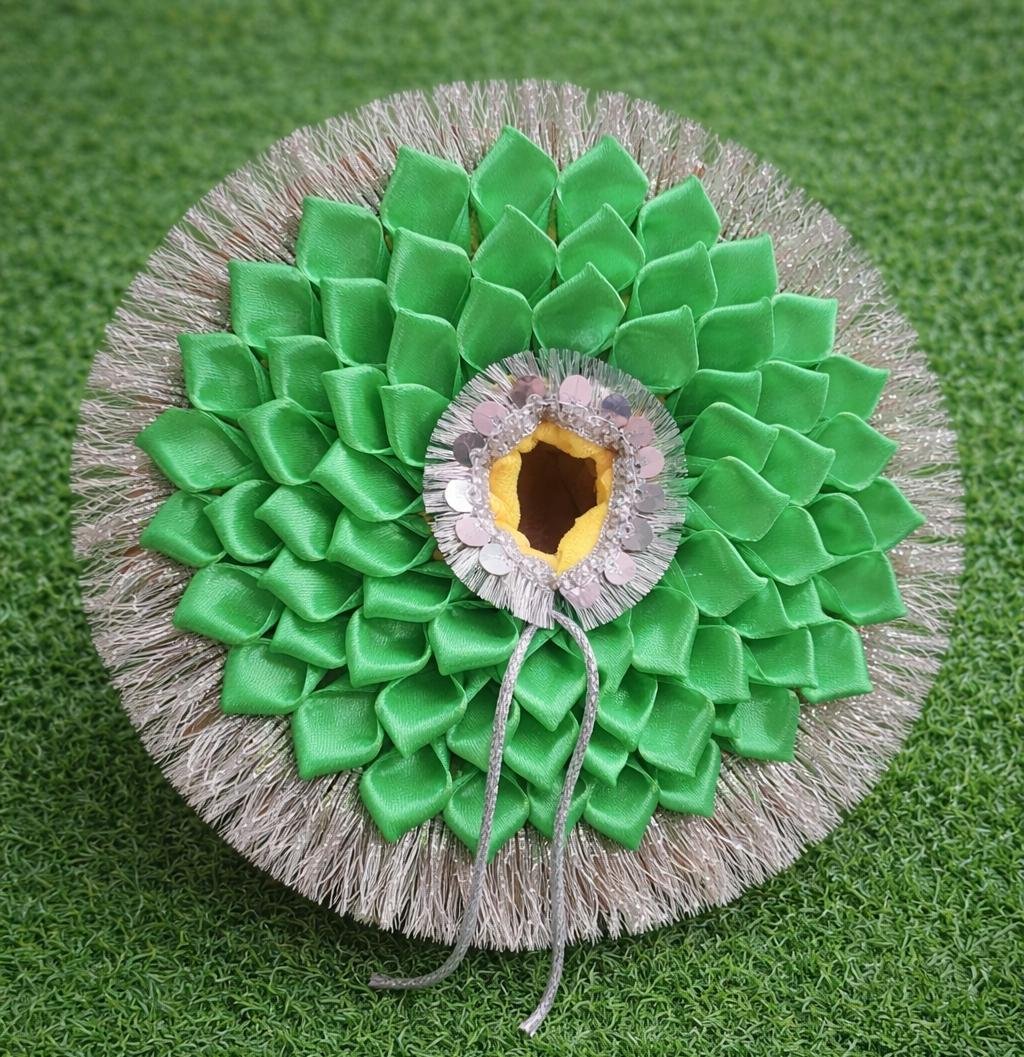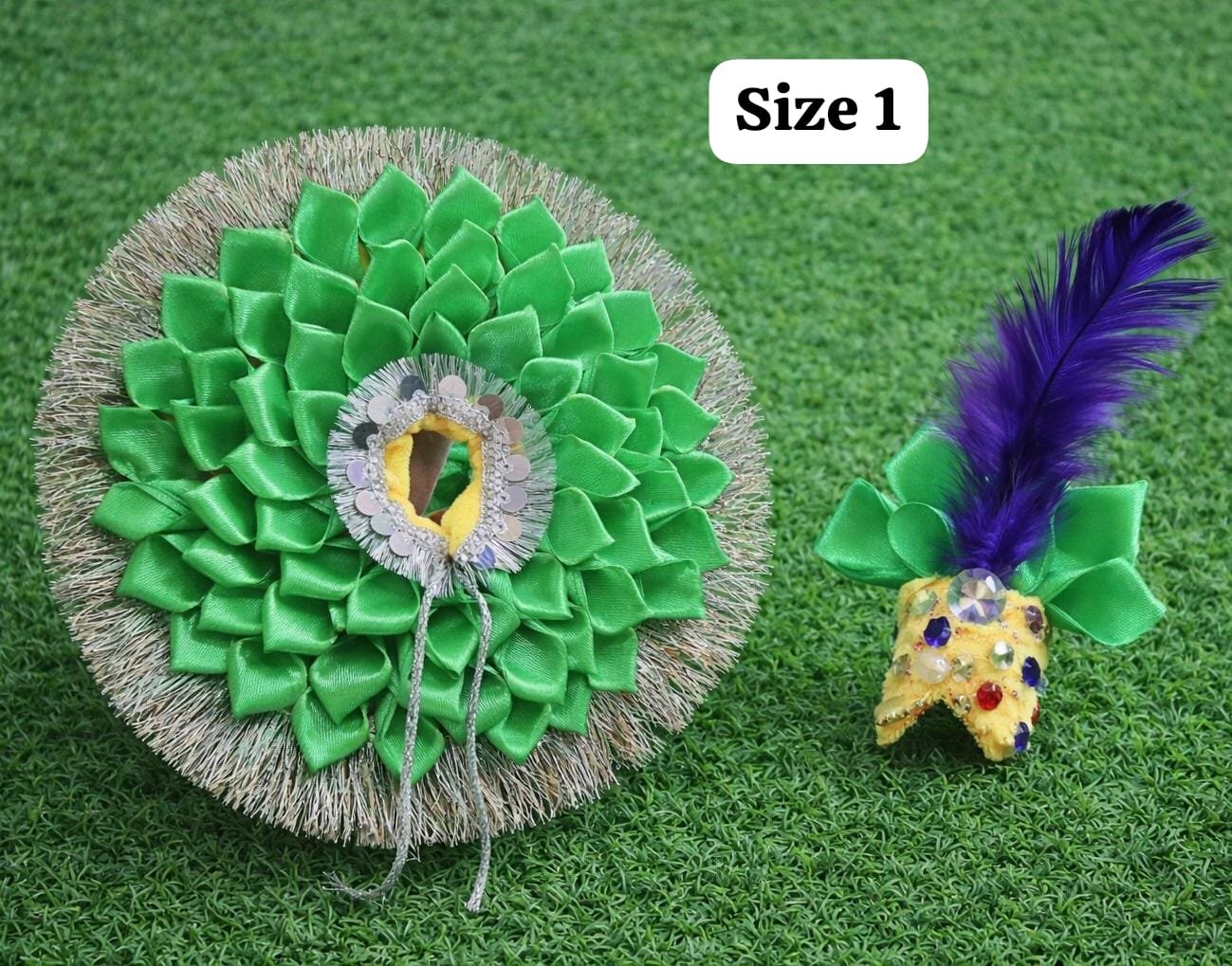 Enhance your Laddu Gopal ji’s beauty with this premium green designer dress set. This handmade poshak comes with a beautiful mukut decorated with stones and feather, giving a divine and attractive look.
