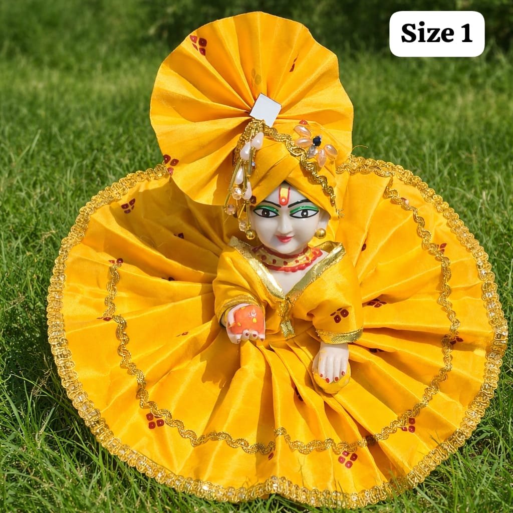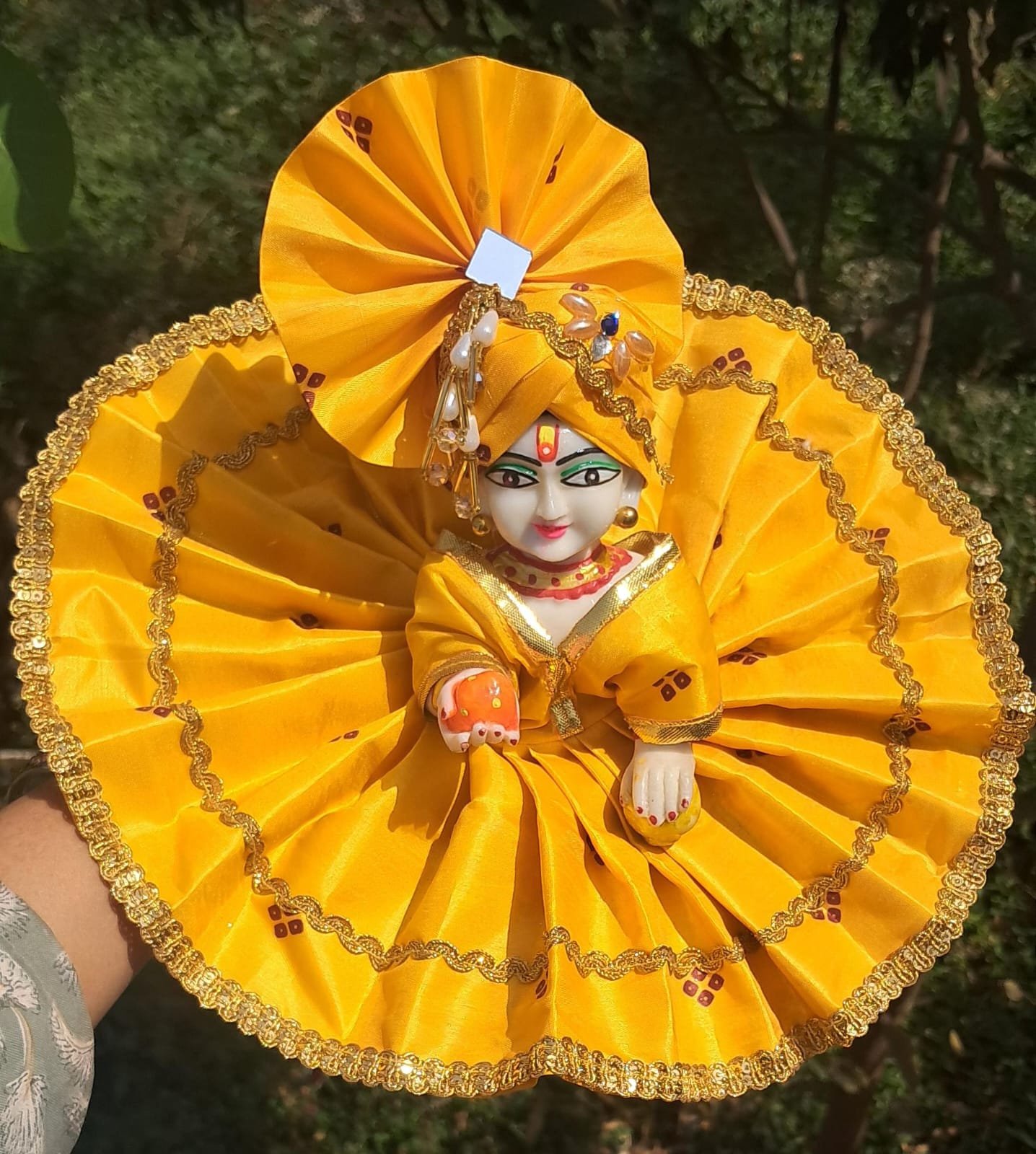 The bright yellow color symbolizes happiness, devotion and positivity which makes it perfect for Janmashtami celebration, daily shringar, temple decoration and festive pooja.