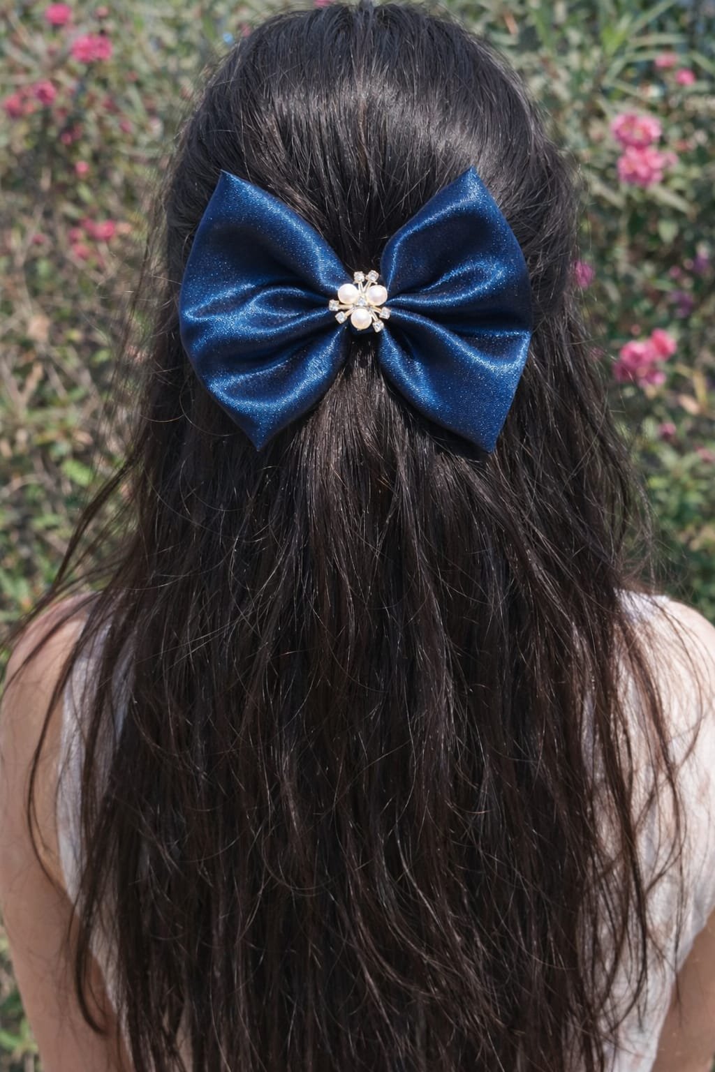 Stylish satin hair bow clip with elegant pearl center design. Perfect for daily wear, parties, and gifting. Strong grip, lightweight & comfortable for all hair types.